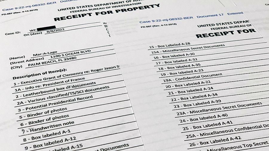 Recibos de lo incautado durante el registro en la mansión de Trump.