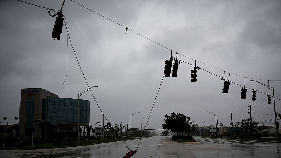 Un semáforo caído por los fuertes vientos generados por el huracán Ian REUTERS/Marco Bello