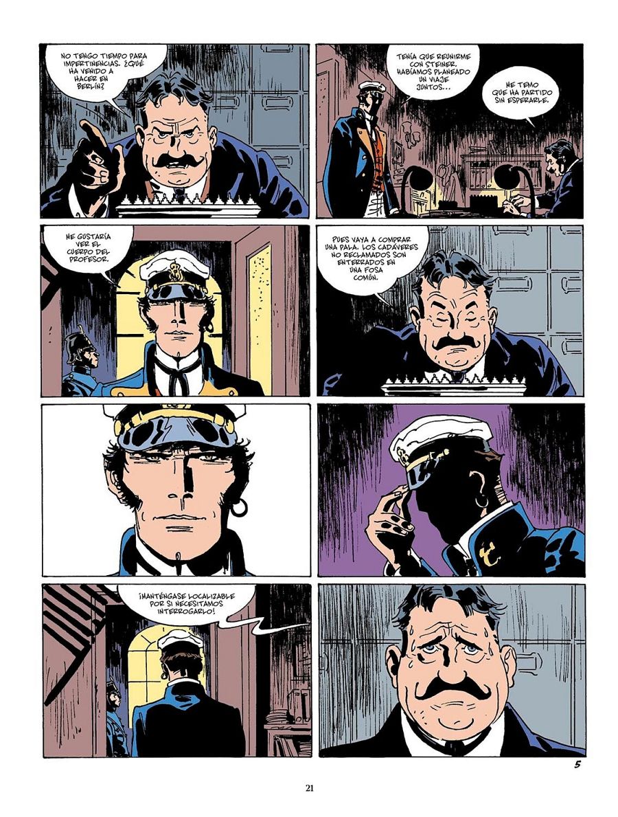 Destacar el excepcional trabajo de Rubén Pellejero, que introduce ese expresionismo alemán y su teatral juego de luces y sombras en Corto Maltés. “Ese Berlín nocturno y sombrío es uno de los protagonistas del cómic –asegura Canales-. Y Pellejero dibuja más liberado que nunca, dejando volar ese maravilloso lápiz negro”.