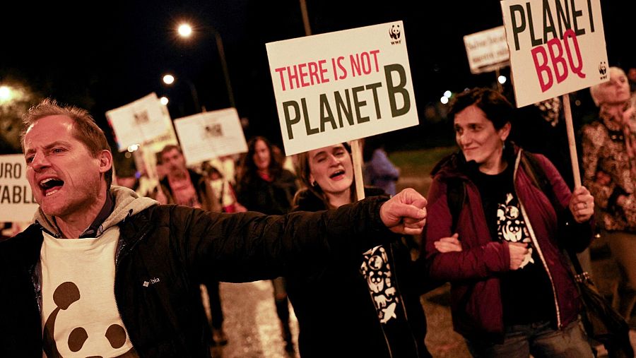 En Bilbao, decenas de personas de más de una veintena de colectivos ecologistas, sociales y sindicales se han concentrado para pedir a los Gobiernos central y vasco que emprendan acciones para evitar la actual "carrera hacia el abismo" en materia climática.