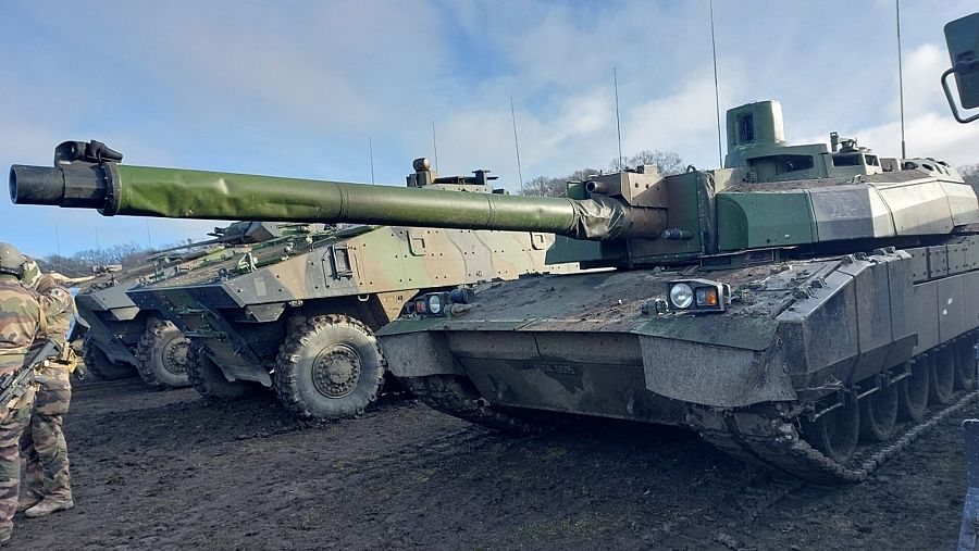 Tres tanques Lecrerc del ejército francés esperan la orden para avanzar. La unidad de reconocimiento avanzado de Países Bajos, desplegada anticipadamente, informa de que una brigada mecanizada con todo tipo de vehículos armados está posicionada al otro lado del valle.