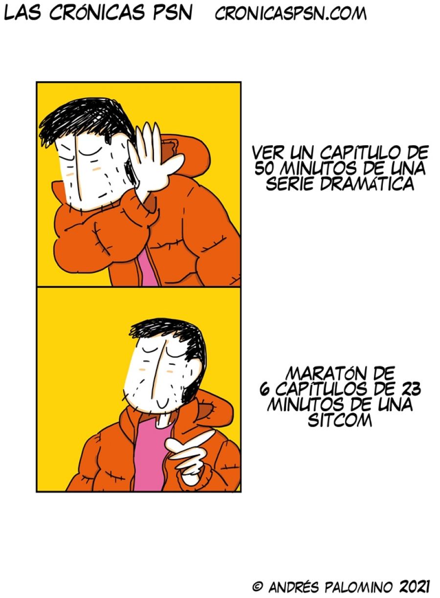 Andrés Palomino lleva 15 años ironizando sobre el mundo de los frikis en su webcómic Las Crónicas PSN, que luego recopila por temáticas en libros autoeditados. El último, Solo un capítulo más, está dedicado al fenómeno del momento, las series de televisión que tienen enganchadas a media humanidad. Desde clásicos modernos como Perdidos, Seinfeld o Twin Peaks, hasta las series mas actuales, como The Crown o Breaking Bad... ninguna escapa los irónicos comentarios del dibujante.