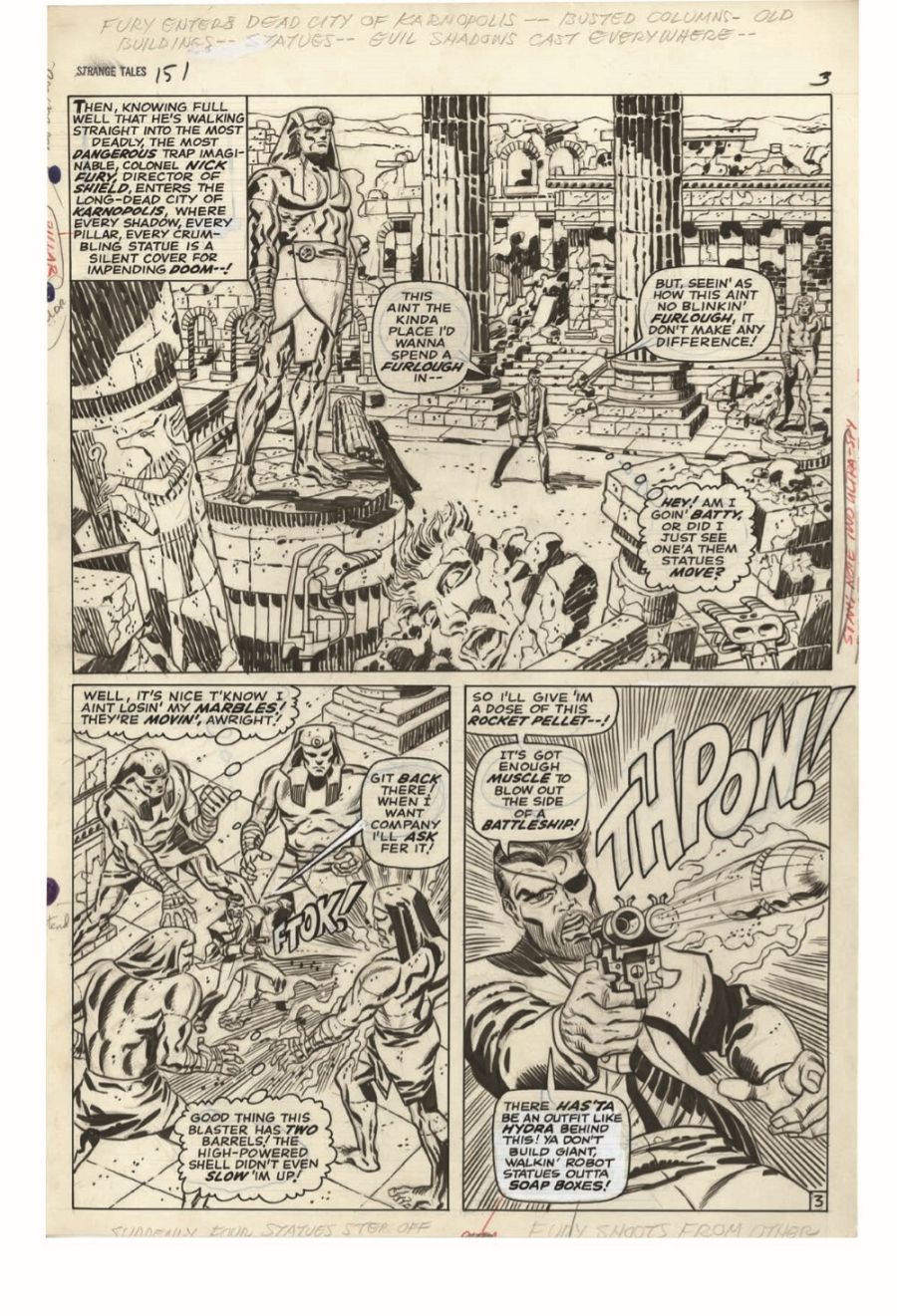 Los primeros números ya fueron memorables gracias a los guiones de Lee y a los dibujos de Jack Kirby y otros grandes dibujantes como John Severin o el inolvidable John Buscema (Conan, Estela Plateada) que regresó a Marvel con este trabajo. Pero todo cambió a raíz de la incorporación de un joven dibujante que había llamado la atención de Stan Lee: Jim Steranko. El resto es historia.