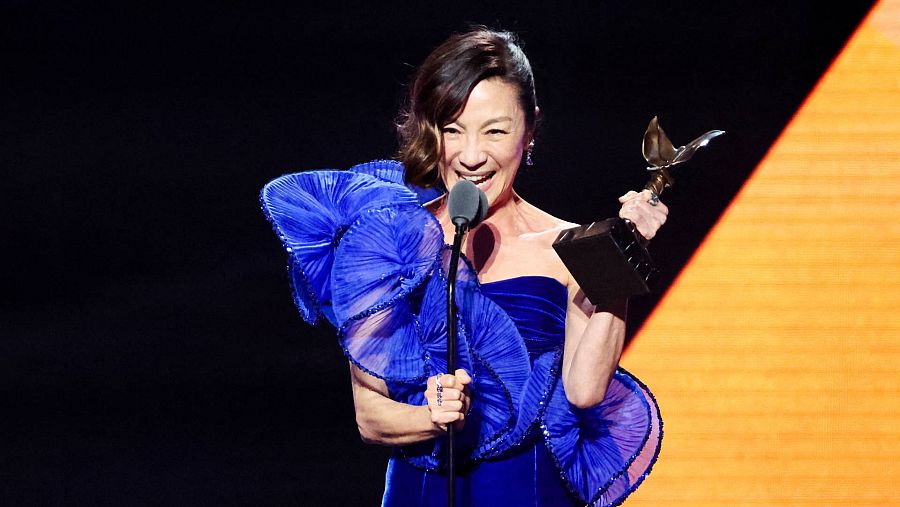 "Agradezco este premio desde el fondo de mi corazón, ninguno de nosotros estaríamos aquí sin nuestros héroes, y los nuestros fueron A24 (la casa productora), que creyeron en la obra maestra de "Los Daniels"", ha expresado Yeoh.
