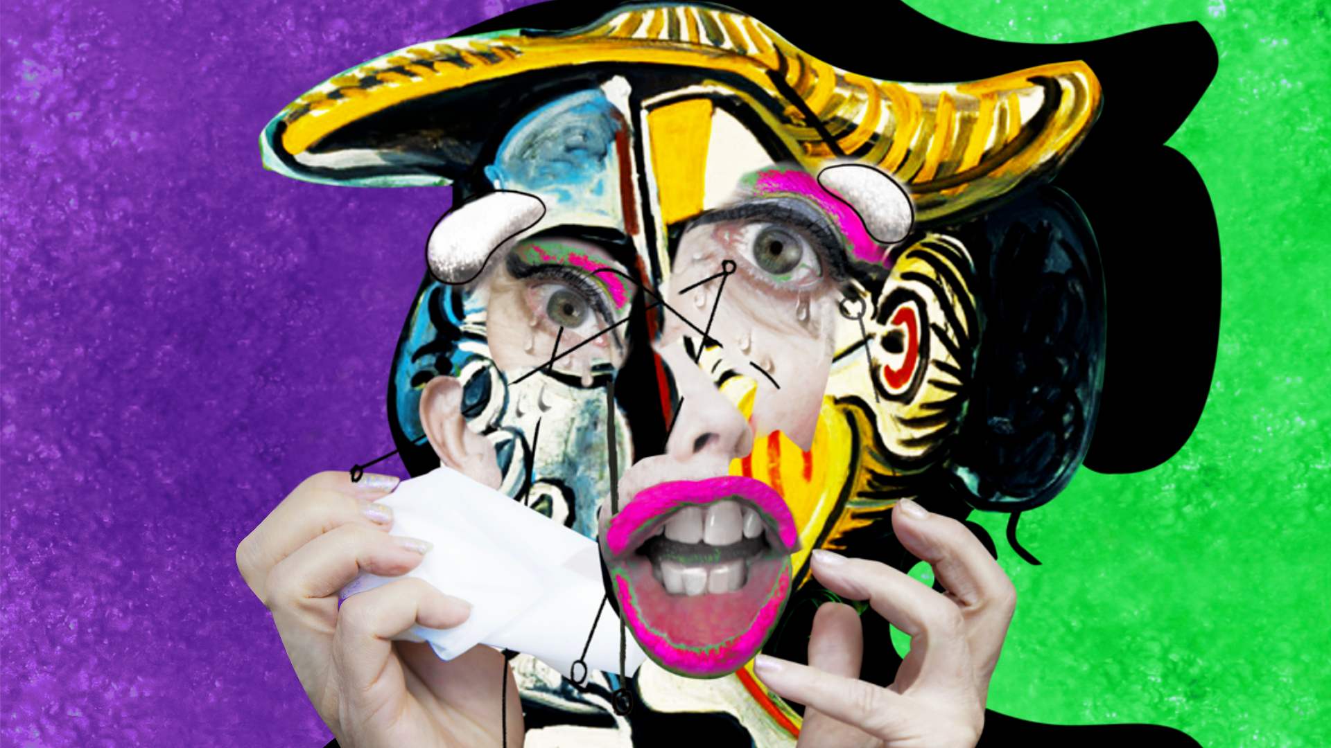 Un trabajo inspirado en los retratos de Dora Maar llorando en los que Orlan sitúa la figura femenina en el centro a través de un collage. Un mensaje de emancipación en el que transforma a la mujer “en sujeto en vez de objeto” [Ver imagen que encabeza la noticia]