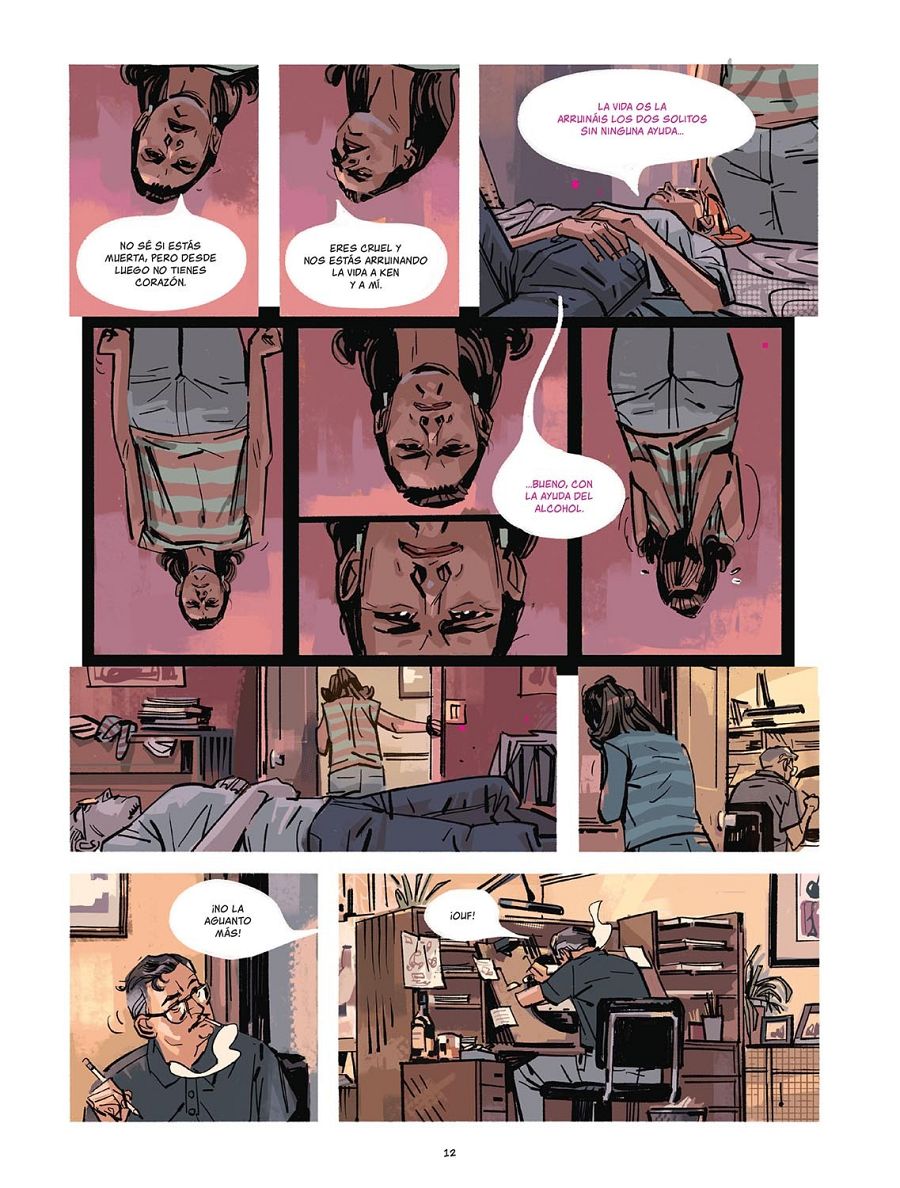 “A la vez -continúa el dibujante-, es un personaje que me despierta mucha ternura y algo de tristeza. Tiene algo como muy poético. Por eso he jugado tanto con el color. Desde el principio decidí que cada vez que ella aparecía en escena pasaran cosas que no parecían reales. Por ejemplo, aparecen jirones de humo rosa, muchos detalles en ese color, e incluso sus diálogos están escritos en color rosa”.