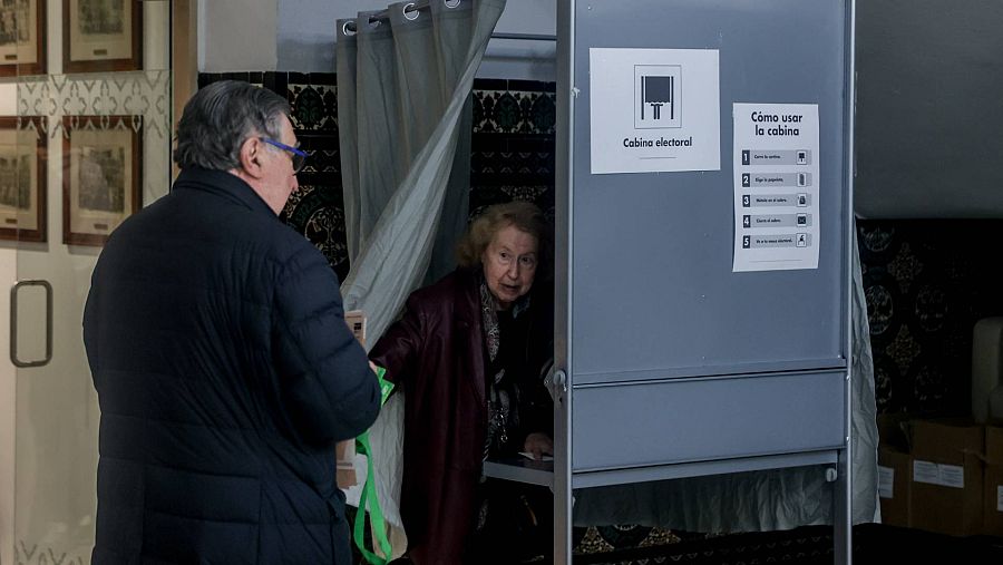 Una mujer utiliza una cabina electoral en un colegio en Madrid Ricardo Rubio / Europa Press