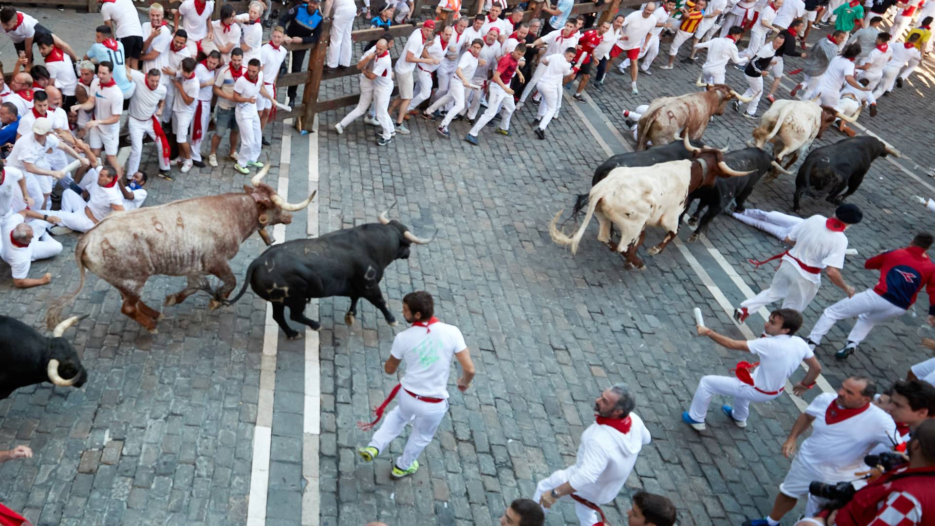 El catedrático Francisco Javier Caspistegui afirma a RTVE.es que, ya desde el siglo XIV, cuando se intensificaron las celebraciones populares en torno al santo, hay referencias de que se celebraban corridas de toros. El traslado de la ganadería, desde el lugar donde reposaba a la plaza de toros, fue el origen de lo que hoy conocemos como encierros.