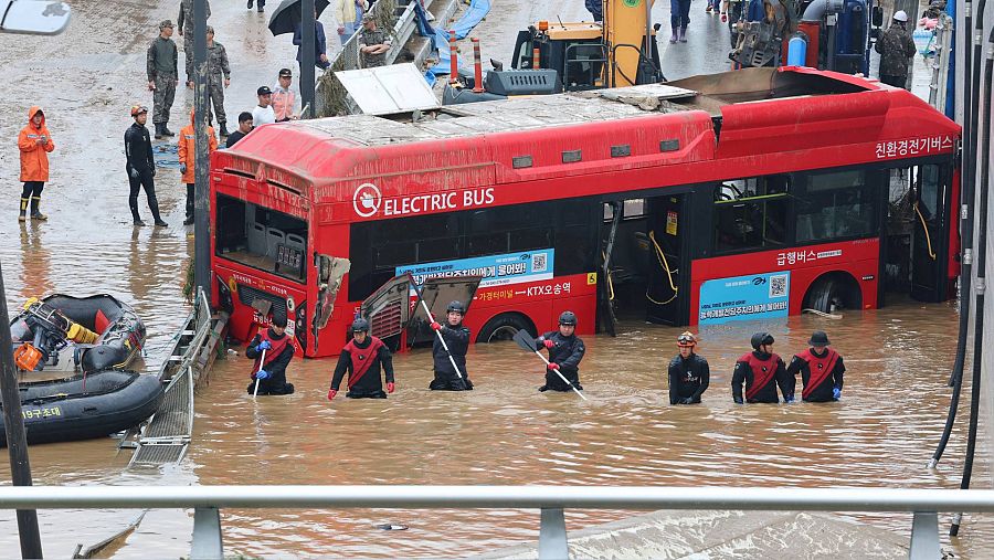 Estas cifras no incluyen a las víctimas de un paso subterráneo para vehículos inundado en Cheongju, Chungcheong del Norte, donde al menos 15 vehículos han quedado atrapados, incluidos un autobús y dos camiones.