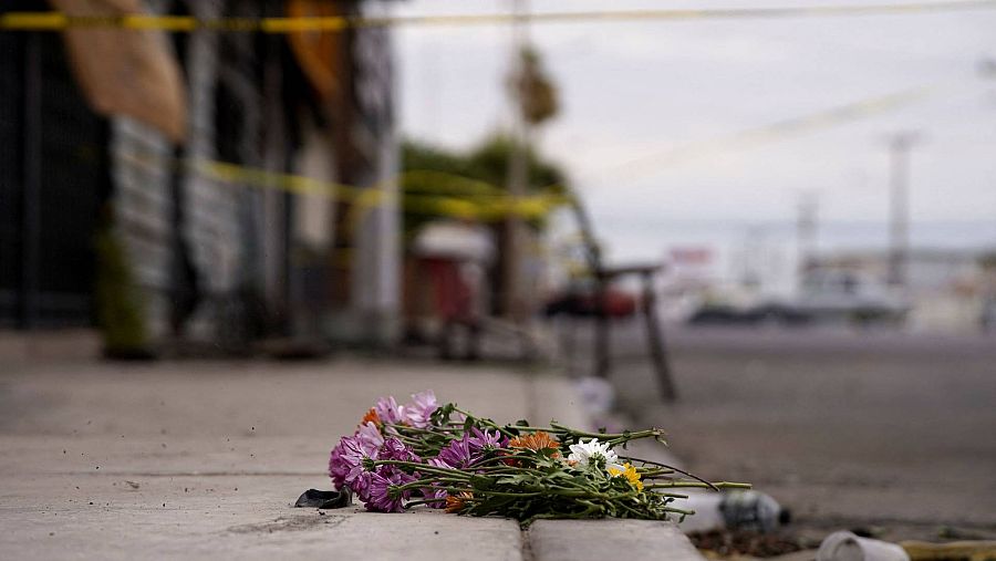 Flores por las víctimas frente al establecimiento.