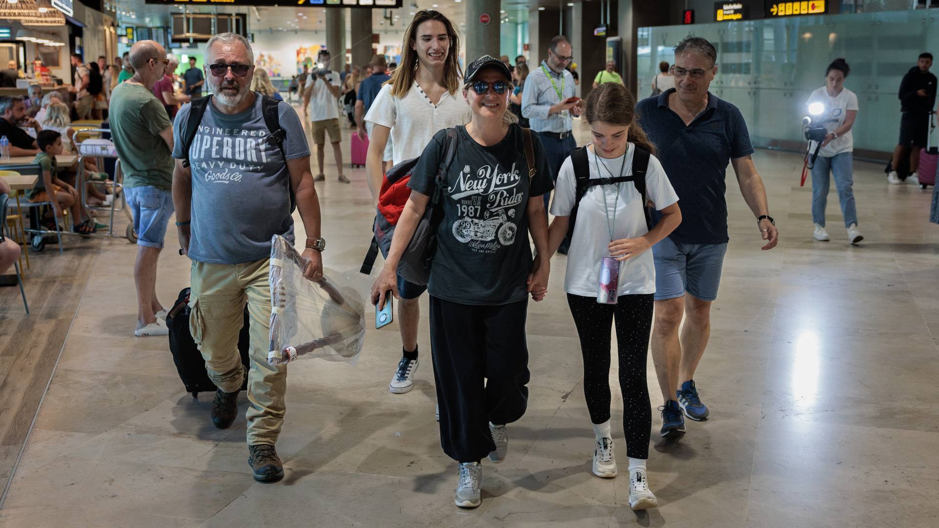 Mauro Fernández, Tina Peris y la hija adolescente de ambos, Patricia, han sido recibidos en el aeropuerto de Valencia por algunos de sus familiares, un momento durante el que también han hablado con los medios de comunicación y ante los que han expresado la "dureza" de la experiencia,