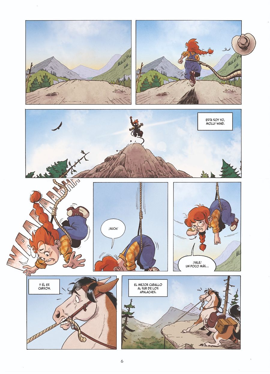 Vamos a conocer ya a la joven protagonista del cómic, a la que nos presenta Catalina: "Molly Wind es una niña de nueve años, alegre y muy decidida, que vive con sus tíos y su hermana en una granja. Le encanta leer y pasar tiempo con su caballo, Carson, que es su compañero de aventuras".