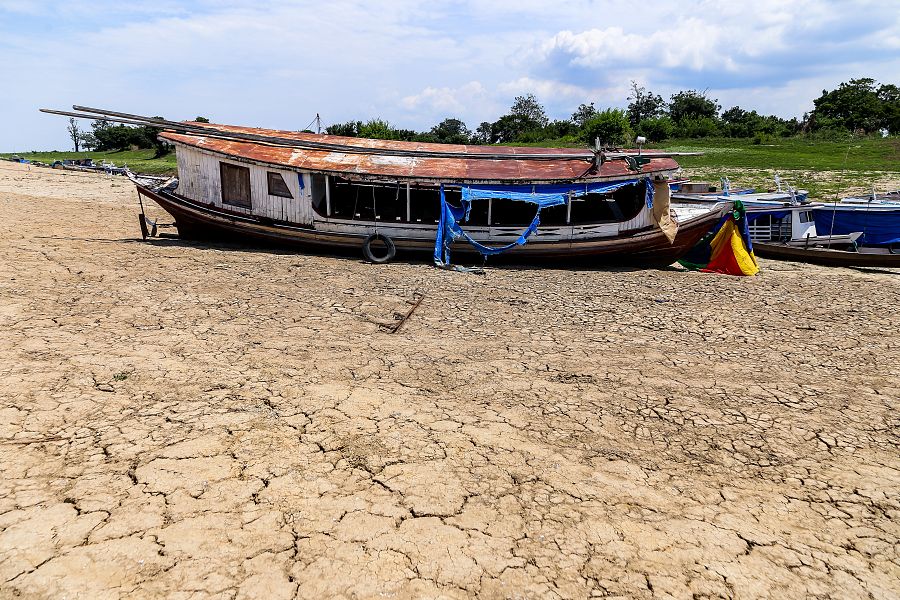 Barcos varados en el Amazonas debido a la sequía. El pulmón verde del planeta vive una crisis sin precedentes. (Aguilar Abecassis/Picture Alliance vía Getty Images) flm