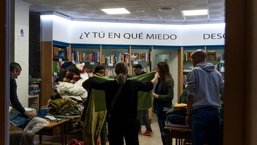 Vecinos hacen acopio de ropa y mantas en los alrededores del edificio incendiado. Jorge Gil / Europa Press.