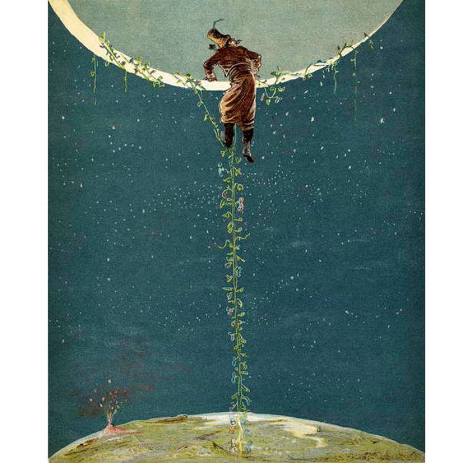 El barón de Münchhausen subía a la luna a través de una planta de frijol de Turquía (1886)