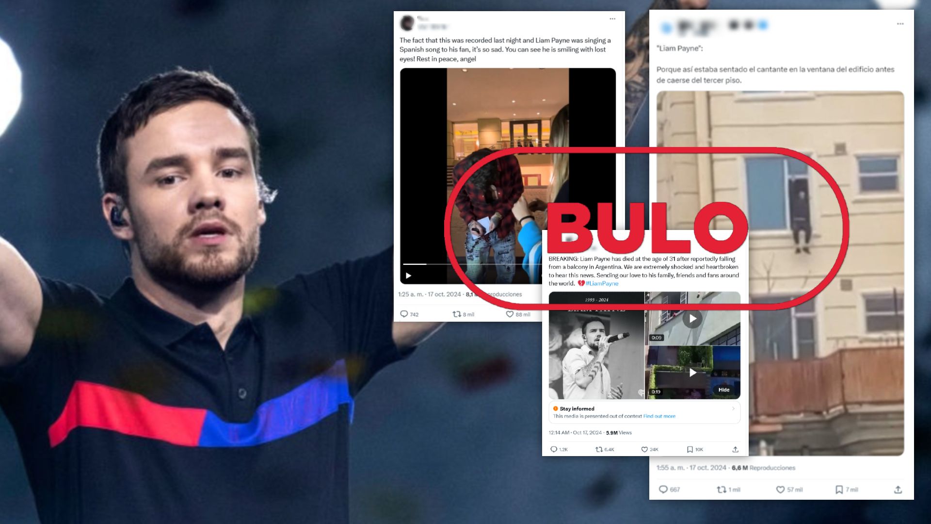 La muerte de Liam Payne, cantante y exmiembro de la banda británica One Direction, tras caer de un tercer piso en el hotel Casa Sur Palermo de Buenos Aires ha dejado una gran conmoción entre sus fans y muchos mensajes de apoyo en redes sociales. Sin embargo, en las plataformas también han circulado contenidos que se presentan como si reflejasen momentos previos y el fallecimiento del cantante pero que no guardan relación con el suceso.