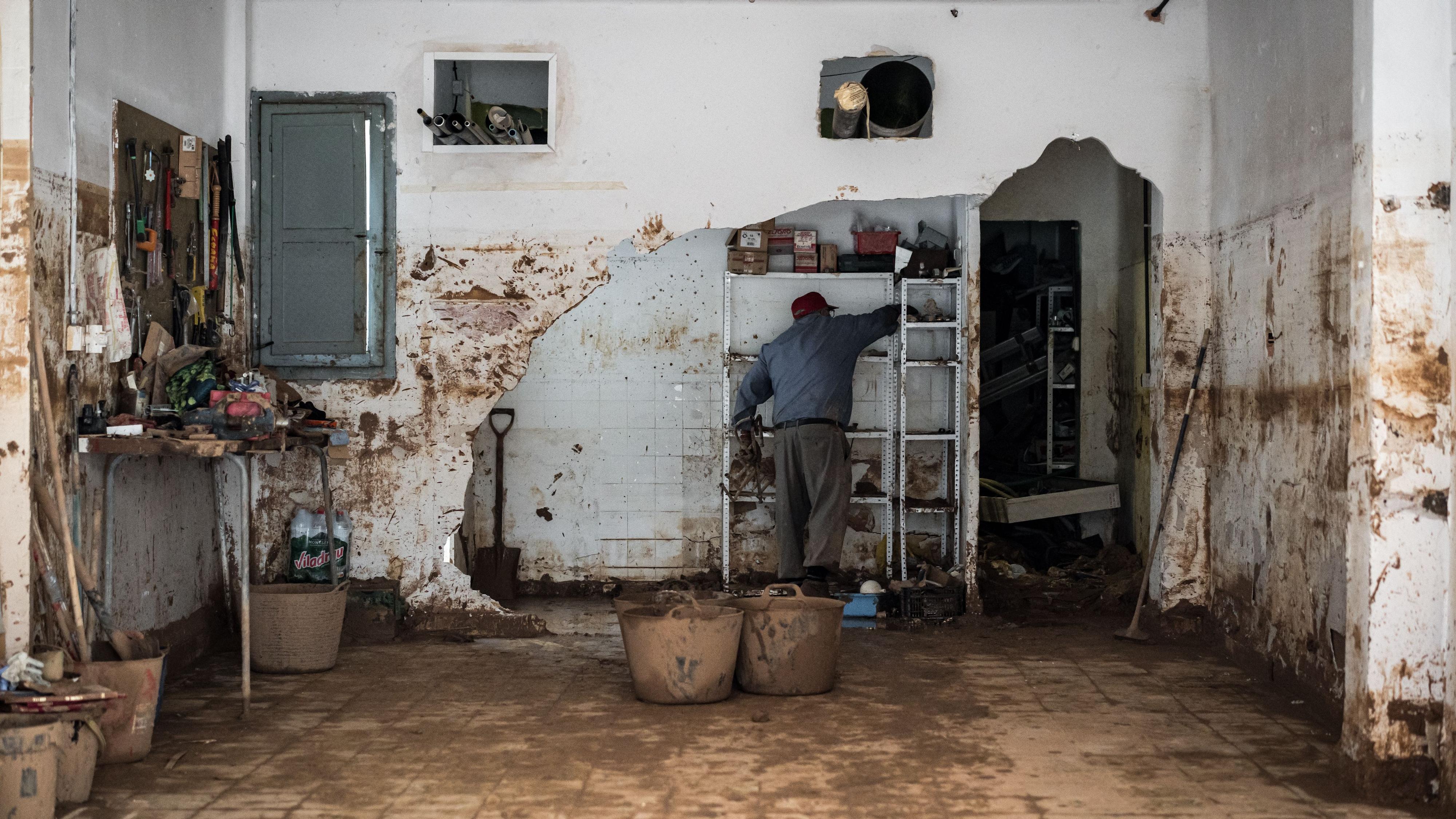Desde el establecimiento cercano al auditorio, Samir carga el móvil, donde sí hay electricidad, pero todo el mobiliario y los electrodomésticos han quedado cubiertos de barro. "Tengo que estar dos o tres horas para cargar mi móvil y el de mi mujer", lamenta.