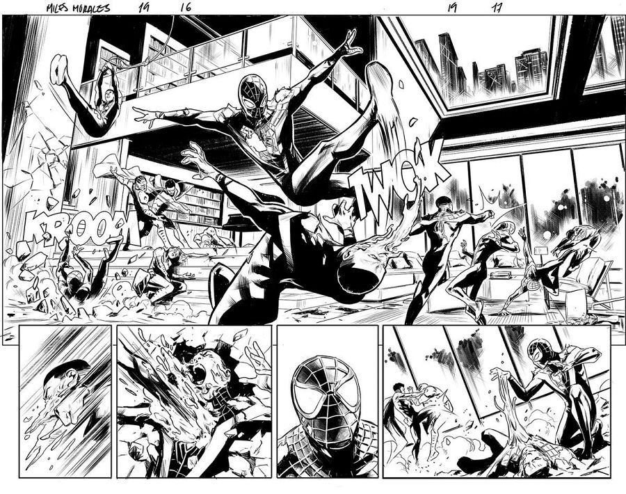 Páginas a tinta de Carmen carnero para 'Miles Morales. Spiderman' (Marvel)