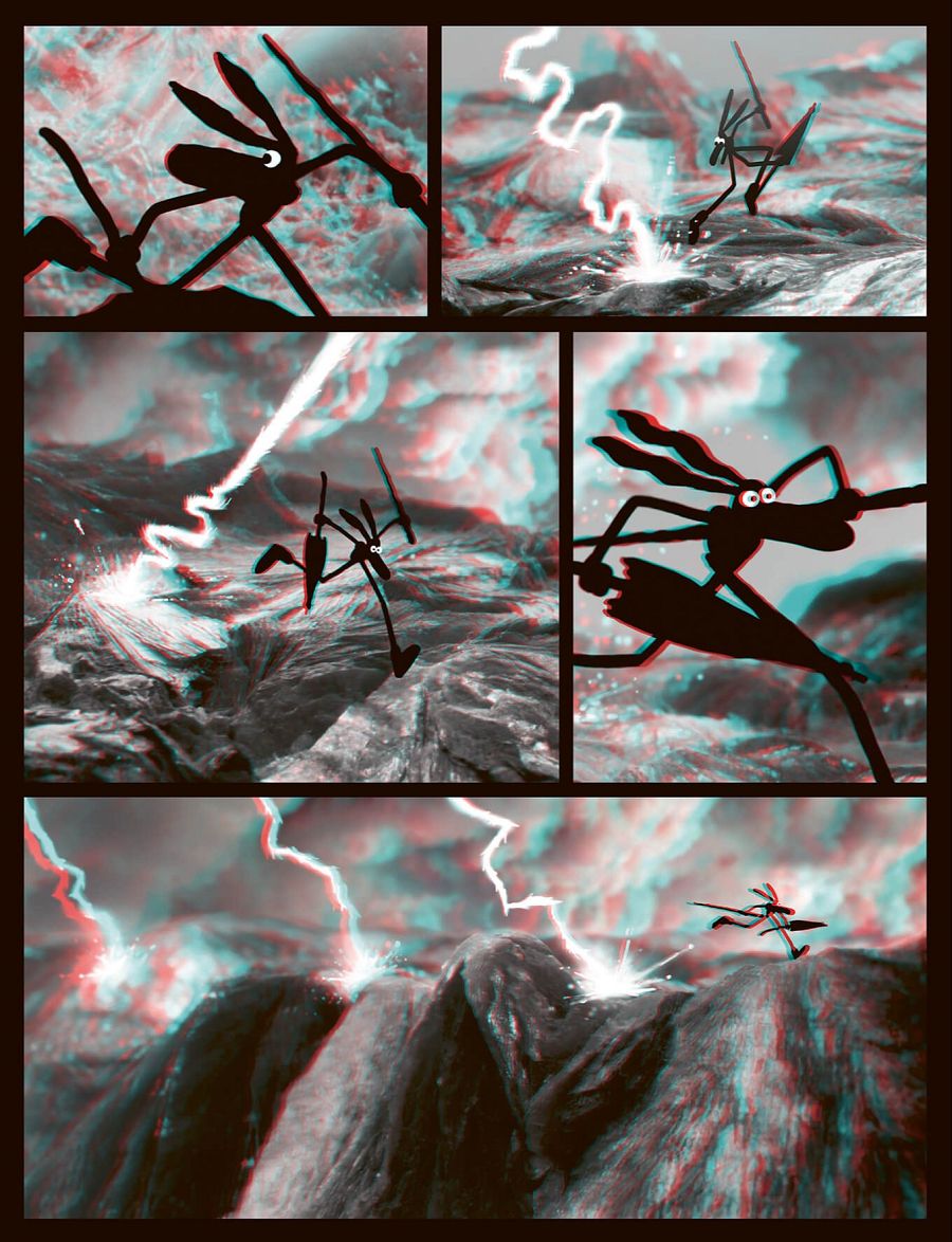 Ese descubrimiento final vuelve a recordarnos esas maravillosas películas de Mélies, los primeros efectos especiales de la historia del cine y al cine mudo en general, ya que son una gran inspiración para este libro. Algo acentuado por el hecho de que la historia sea muda (o casi), como los otros libros en 3-D de su autor.
