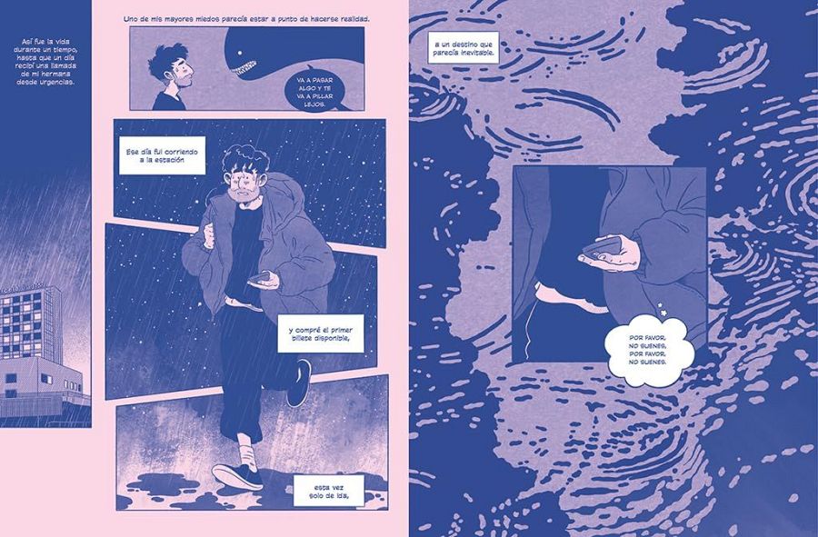 Las fases del duelo están presentes en el cómic, desde la negación a la aceptación. "Al dibujar la historia -nos confiesa Alfonso-, me di cuenta de que los capítulos coincidían más o menos con algunas fases habituales del proceso. Creo que el duelo se parece mucho a un viaje en metro: aunque tiene unas paradas determinadas, no todos hacemos el mismo recorrido. Una persona puede saltarse una estación, otra volver una y otra vez a la misma parada o quizá otra persona haga el recorrido completo. Este cómic es mi trayecto, tan diferente (y a la vez supongo que tan parecido) al de cualquier otra persona".