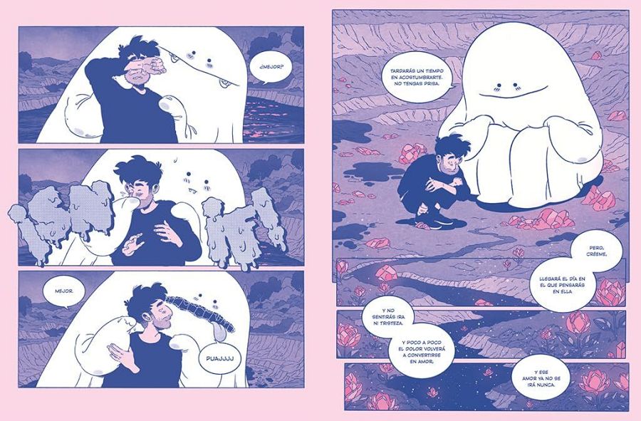 "Dibujar era una forma de intentar escapar de él -continúa-. Darme cuenta de esto es lo que me hizo pensar que ahí había una historia. Porque este es un cómic sobre el duelo, pero sobre todo es una historia sobre una persona que no quiere estar triste, y como intenta por todos los medios (conscientes e inconscientes) que el dolor no le alcance. Pero esto, en un duelo, es bastante complicado".