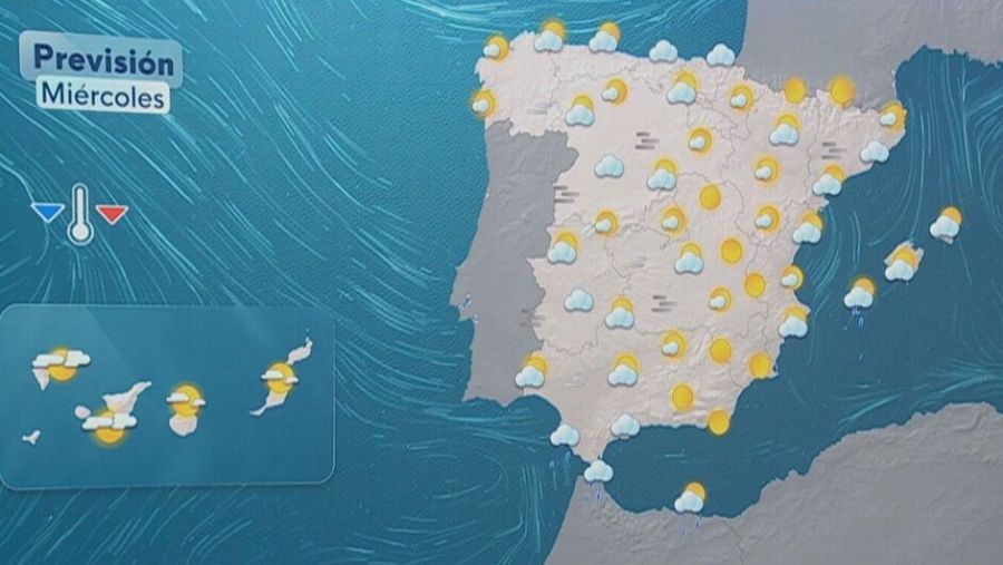 En Baleares se esperan algunos chubascos ocasionales, que de forma aislada podrían alcanzar puntos del litoral mediterráneo y el área del Estrecho. En Canarias habrá intervalos de nubes, temperaturas sin grandes cambios y viento flojo del sur y este, que irá ganando intensidad con el paso de las horas.