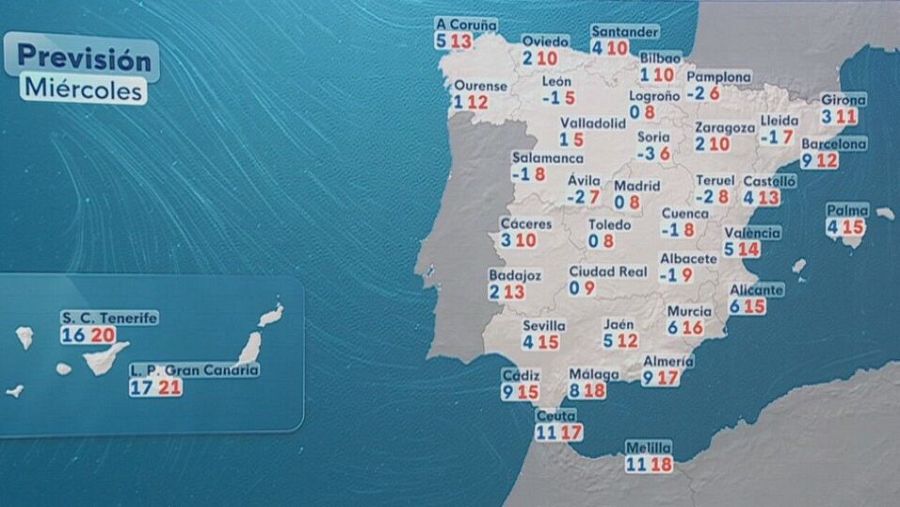 Mapa con las temperaturas máximas y mínimas este miércoles 31 de diciembre El Tiempo RTVE