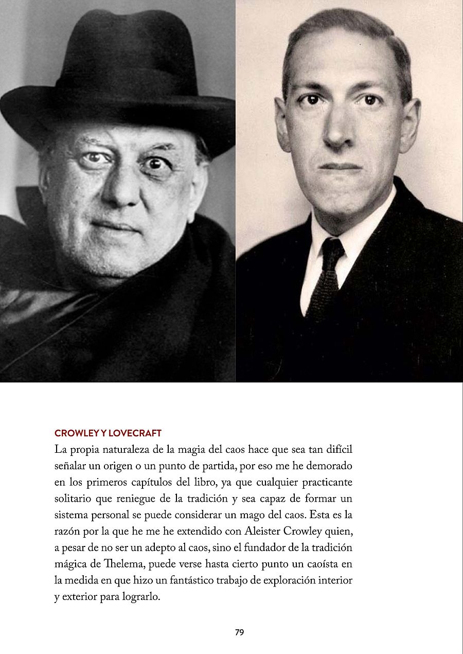 "Crowley es el mago más importante del siglo XX, fue un personaje carismático y arrollador -añade el autor-. Si antes comparaba la magia del caos con el punk no puedo evitar comparar a Crowley con Elvis. Crowley fue ocultista, escritor, poeta, pintor, espía, alpinista... En todas las vertientes destacó y siempre trajo consigo el escándalo. Aunque no sea correcto tildarlo de caoísta, pues trabajó una magia ceremonial clásica, su talante libertario y provocador fue una inspiración indudable para la magia del caos".