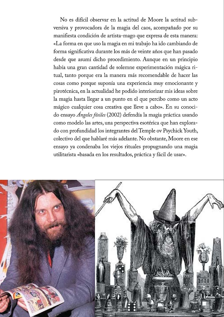 Alberto destaca la importancia de Alan Moore y Grant Morrison en la difusión de la magia del caos: "Es probable que se puedan considerar sus introductores en España. Son dos guionistas de cómics de enorme éxito y tanto en su trabajo como en su proyección pública han hecho un gran trabajo de difusión. Es una pena que no tengan una buena relación, aunque tal vez sea inevitable".