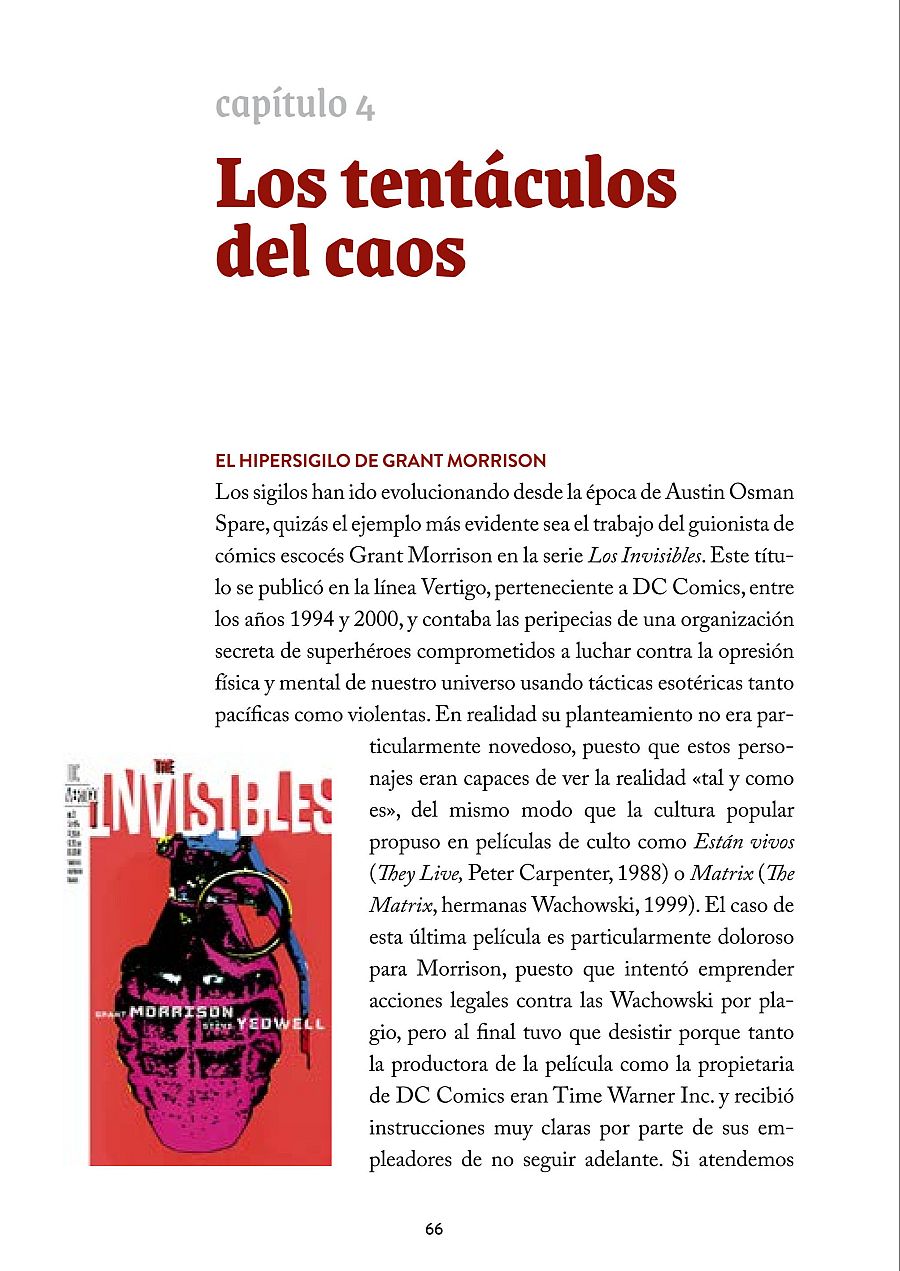 Solemos asociar la magia a los trucos de cartas o a la fantasía de libros y películas como Harry Potter, pero para mucha gente existe otro tipo de magia: la magia del caos, en la que creer es poder. Una corriente ocultista moderna, surgida en Inglaterra en los años 70, que tiene sus propios rituales e incluso sus propios magos, entre los que podríamos destacar a dos famosos escritores de cómic: Alan Moore (Watchmen, V de Vendetta) y Grant Morrison (Animal Man, Los Invisibles). Alberto Ávila Salazar (El Ciclo del Triángulo Negro) nos desvela su historia, sus secretos y sus rituales en el libro Historias de la magia del caos. Más allá de Alan Moore y Grant Morrison (Diábolo ediciones).