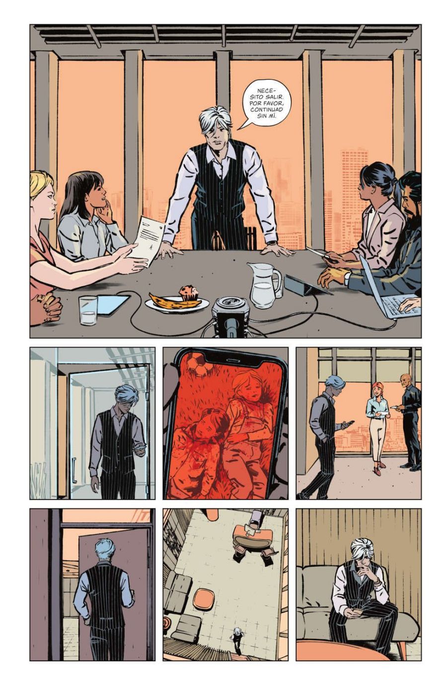 “Por eso –añade-, trabajar ahora con una rejilla y utilizar unos registros narrativos un poco más rígidos, más contenidos, para mí es un poco una liberación. Porque esas páginas impactan en el género de superhéroes, pero cuando se trata de intentar marcar el ritmo de una historia, de que el lector se meta más, realmente esas escenas te están quitando un montón de herramientas. Por eso disfruto más narrando las cosas de esta manera, jugando con el ritmo”.
