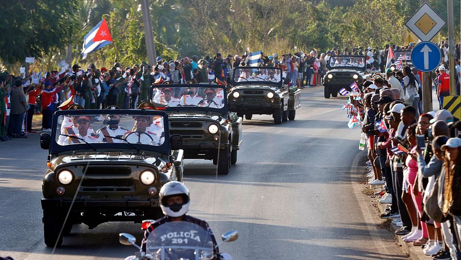 Una caravana transporta este jueves por las calles de La Habana urnas con los restos de oficiales cubanos asesinados durante la operación estadounidense en Venezuela que capturó al presidente venezolano Nicolás Maduro Ernesto Mastrascusa Ernesto Mastrascusa/Pool photo via AP