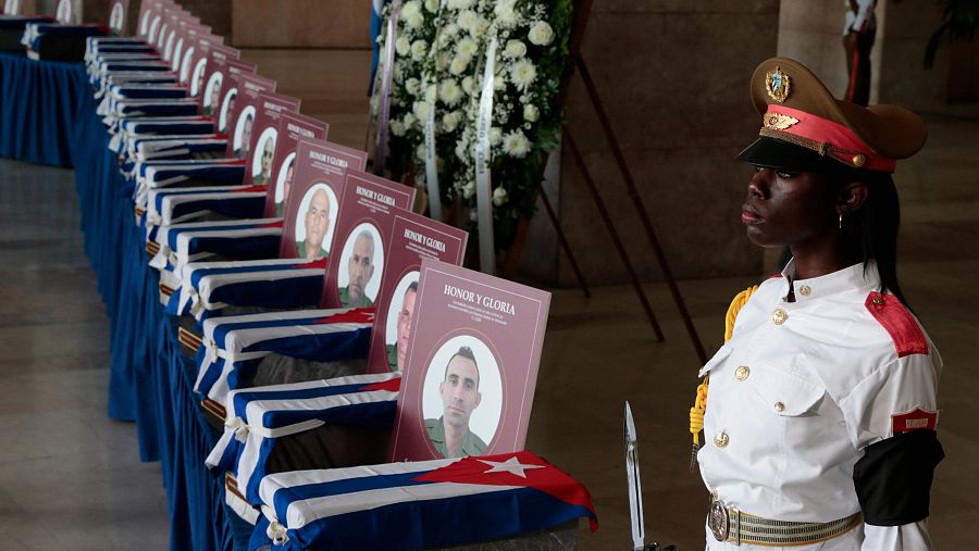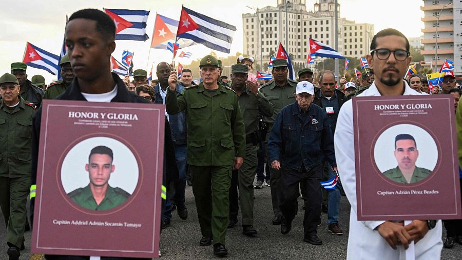 El acto de este viernes, una "Tribuna Antiimperialista" celebrada ante la Embajada estadounidense en Caracas, encabezada por altos cargos del Gobierno y el Partido Comunista de Cuba (PCC), se produce después de que en la víspera llegaran al aeropuerto internacional José Martí de La Habana los 32 féretros con los restos de los militares cubanos muertos en Venezuela. Allí se pudo ver a familiares de los fallecidos y a autoridades cubanas, entre ellas el propio Díaz-Canel y al expresidente Raúl Castro, de 94 años, y cuya presencia es poco habitual desde que dejó la presidencia.