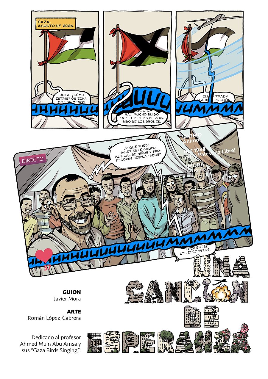 Un cómic para el que han contado con importantes colaboradores: "La colaboración más directa es con Salah El Sousí, de 75 años, nacido en Gaza pero que actualmente vive en un pueblo de Sevilla y que nos concedió una entrevista que será incluida en la antología. También tenemos a Marcos Méndez, reportero de Mediaset que, durante varios meses, estuvo sobre el terreno, informando, y que se ocupa del prólogo".