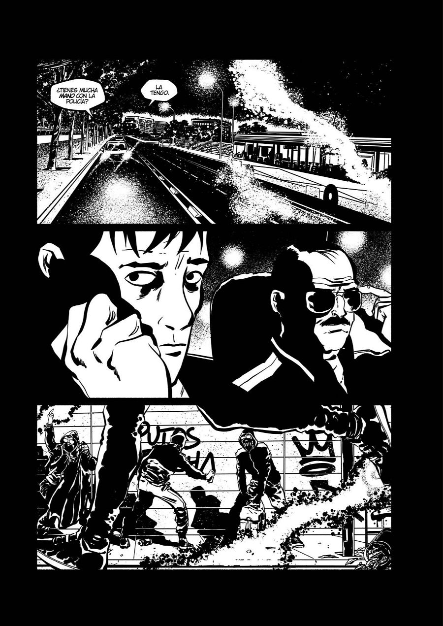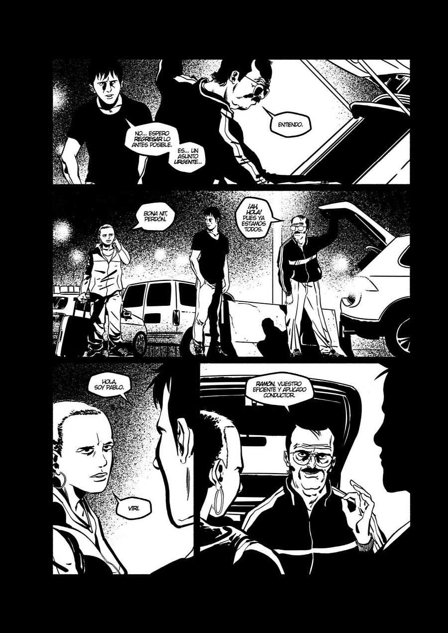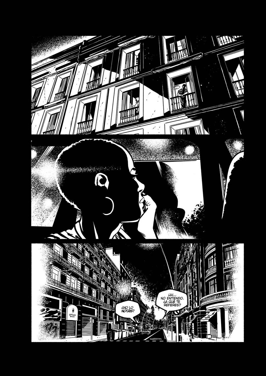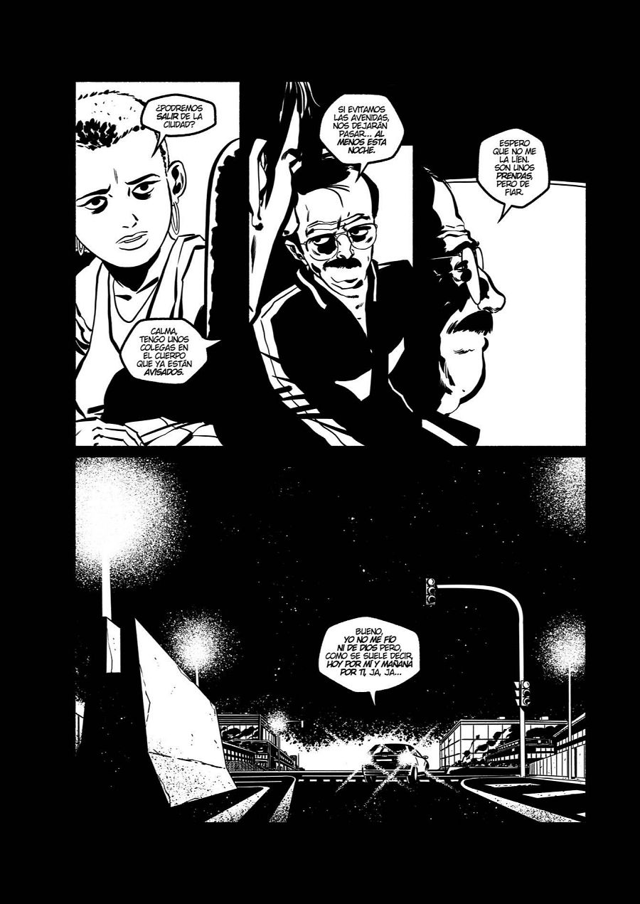 “De hecho-concluye-, he intentado evitar las tramas que usé en ¡García! para dar una cierta profundidad al dibujo. En este cómic casi todas las páginas son en blanco y negro puro, muy contrastadas. Salvo alguna que necesitaba esos grises narrativamente. Pero que ese blanco y negro puro le da un aspecto más poderoso al cómic, más potente”.