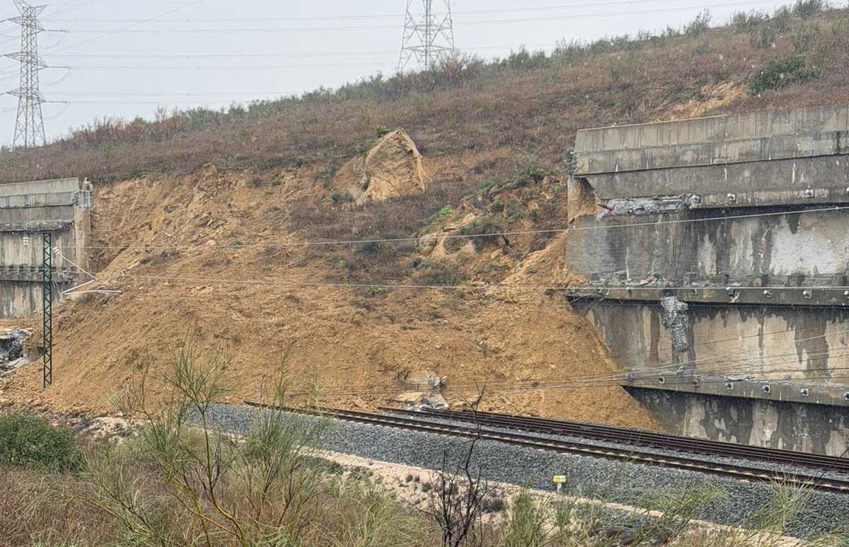 Un desprendimiento provocado por el temporal ha sepultado parcialmente las vías, aunque el tráfico ferroviario ya estaa interrumpido desde el accidente de dos trenes el 18 de enero en Adamuz (Córdoba) que dejó 46 víctimas mortales.
