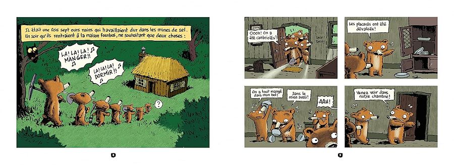 Si os gusta Shrek no podéis perderos Los maravillosos cuentos de los 7 osos (Hachette Cómic), de Émile Bravo (Spirou), una divertidísima vuelta de tuerca a los cuentos clásicos como Blancanieves, La Bella y la Bestia, La Cenicienta... que está protagonizada por siete osos enanitos que no son demasiado listos ni bondadosos, pero que son tremendamente divertidos, al igual que todas las parodias de los cuentos clásicos que veréis desfilar por sus alocadas aventuras.