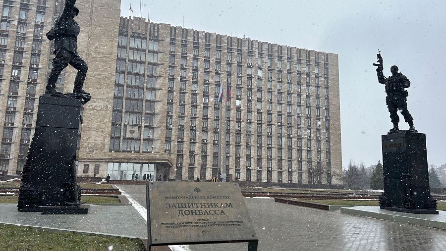 Hablamos con él delante del edificio administrativo de la capital regional en el que se autoproclamó en 2014 la República Popular de Donetsk.