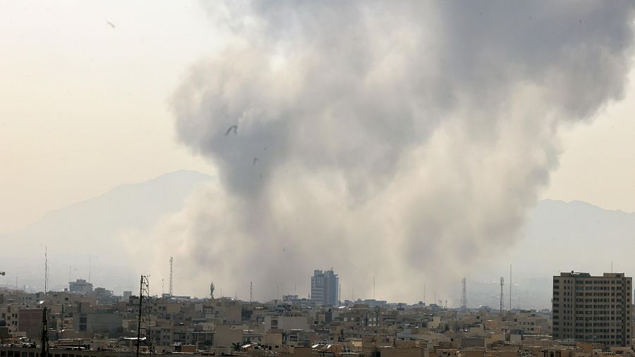 Una columna de humo emerge del centro de Teherán tras un ataque israelí este sábado AFP