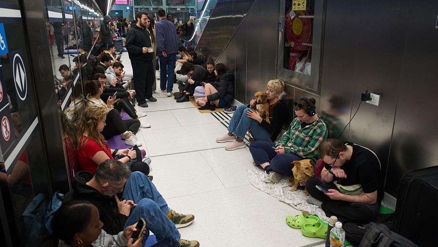 La gente se refugia en una estación de metro mientras las sirenas antiaéreas advierten sobre ataques inminentes de Irán, en Ramat Gan, Israel AP