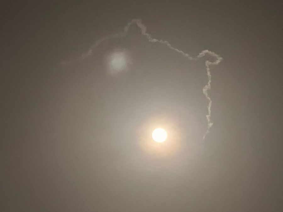 El aspecto del cielo de la isla de Al Reem en Abu Dabi después de una explosión interceptada por la cúpula antimisiles A.Cabarcos