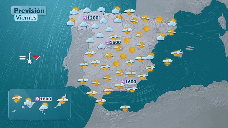El tiempo dará un giro notable en España a partir de este viernes, con un descenso de las temperaturas, precipitaciones en amplias zonas del país y nieve en cotas relativamente bajas para la época.