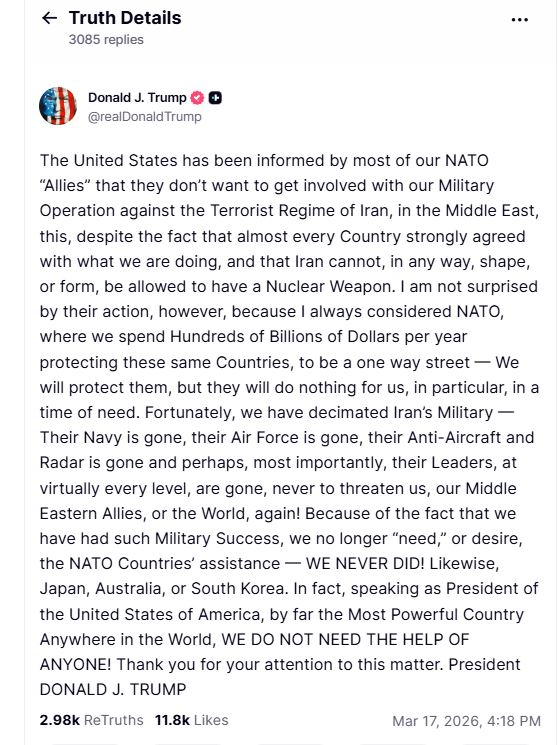 Irán no cede en su pulso con EEUU e Israel y mantiene sus amenazas contra los barcos que traten de cruzar esta zona del Golfo Pérsico. Donald Trump, el mismo que hace unos días decía que la marina iraní había sido totalmente aniquilada, ha vuelto hoy a aumentar la presión sobre sus socios de la OTAN, a los que reclama una misión naval para proteger a los petroleros que quieran cruzar Ormuz.