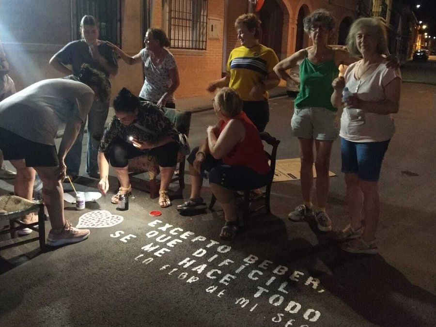 Varias vecinas de Calzada de Calatrava decorando la calle del director manchego Festival de Cine de Calzada de Calatrava