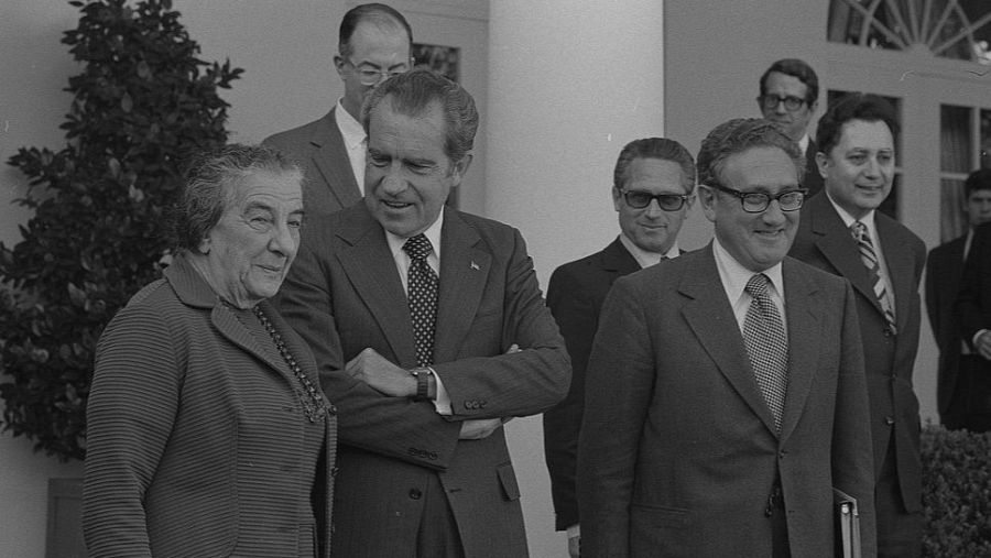 La primera ministra de Israel, Golda Meir y el presidente norteamericano, Richard Nixon, junto a Henry Kissinger a las afueras de la Casa Blanca Biblioteca del Congreso de Estados Unidos