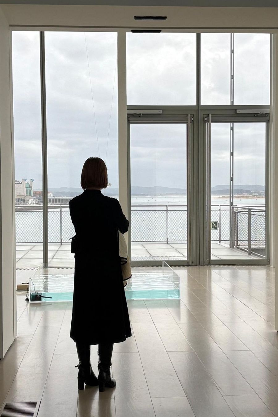 Yuko Mohri contempla una de sus obras asomada a la bahía de Santander. B.D.