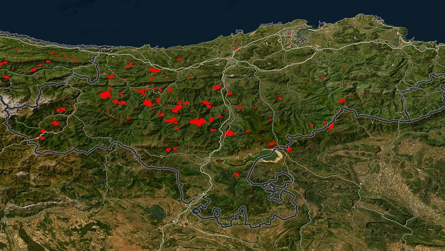 Localización de los incendios declarados en Cantabria desde el 4 de abril FIRE INFORMATION FOR RESOURCE MANAGEMENT SYSTEM / NASA