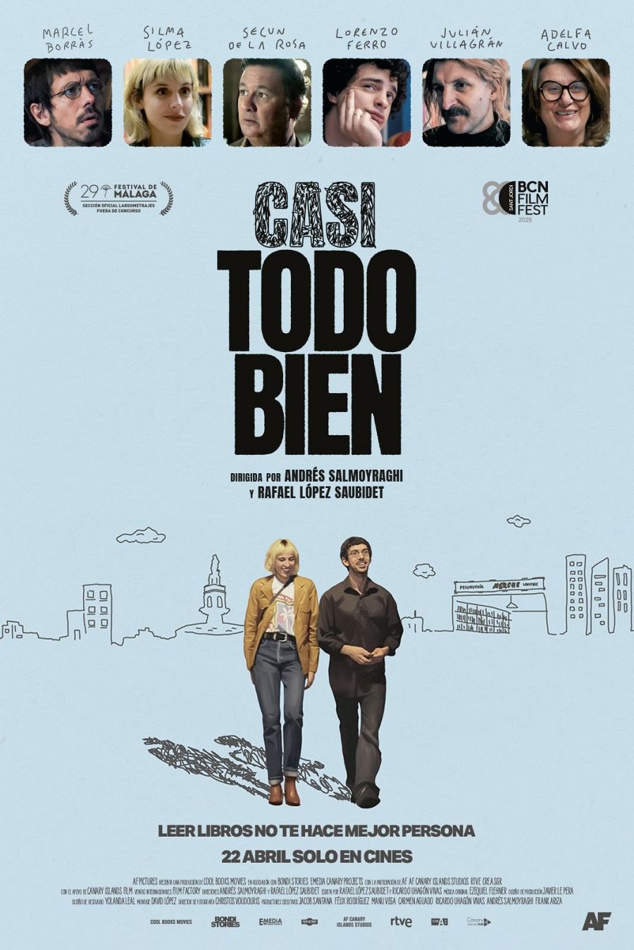 Es el argumento de Casi todo bien, el debut en la dirección de Andrés Salmoyraghi y Rafael López Saubidet, una comedia sobre el mundo literario ambientada en la noche madrileña que protagonizan Marcel Borràs, Silma López, Lorenzo Ferro, Julián Villagrán, Secun de la Rosa y Adelfa Calvo. Cuenta con la participación de RTVE y llegará a los cines este miércoles, 22 de abril.