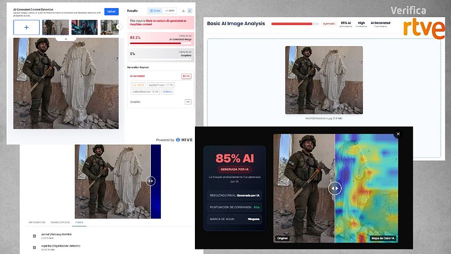 Resultados de las herramientas de detección de IA sobre la imagen VerificaRTVE