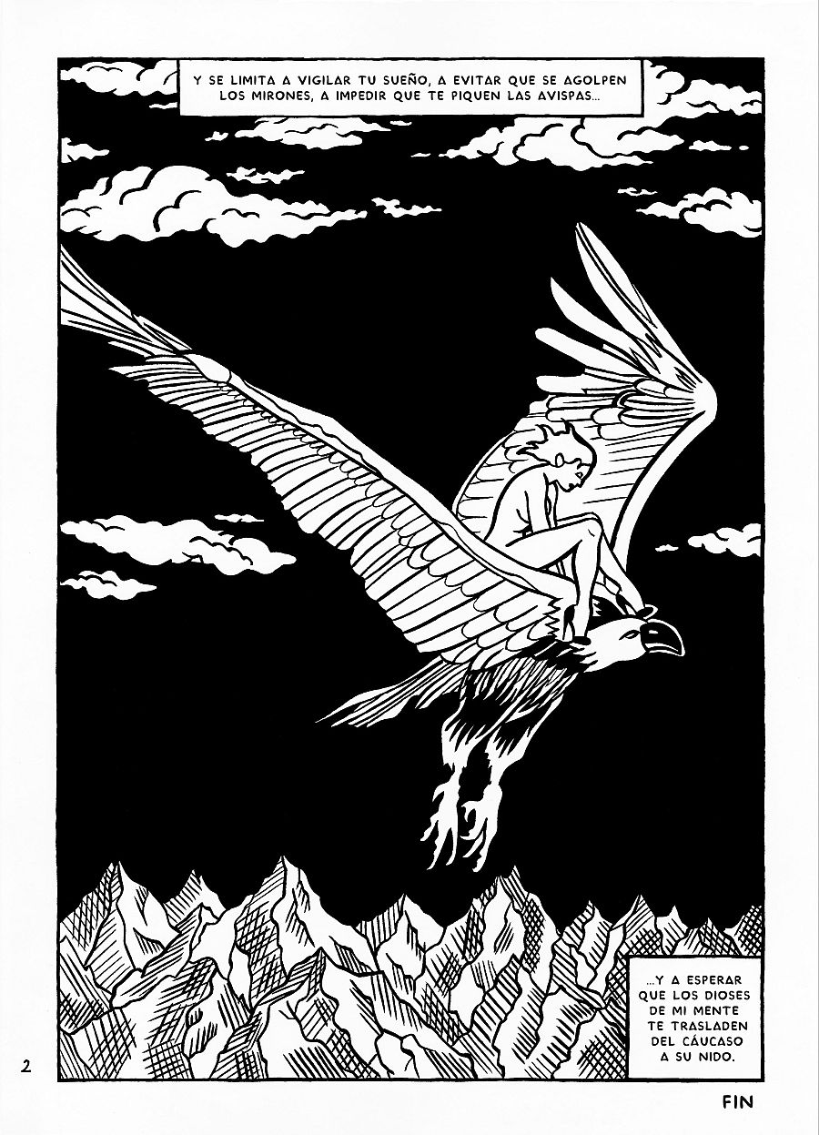 Y empezamos preguntando a Laura por qué le gusta tanto colaborar con Luis Alberto de Cuenca: "Para mí, como historietista, es imprescindible que el guionista o poeta confíe plenamente en mis dibujos y que él esté entusiasmado con nuestro proyecto conjunto de álbum. Si el o la guionista no tienen demasiado entusiasmo en esa novela gráfica, para mí, el año y medio de dibujarla se convierte en un verdadero suplicio. Luis Alberto de Cuenca es de los pocos poetas-guionistas que acompaña con entusiasmo al dibujante a lo largo de todo el trayecto hasta finalizar el dibujo del álbum".